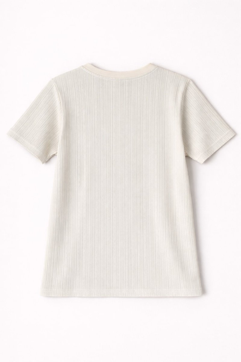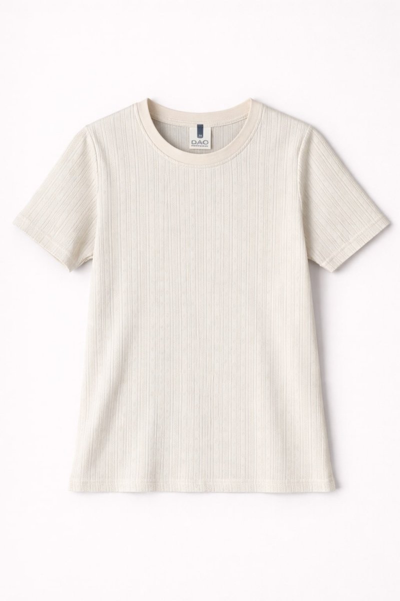 Découvrez le t-shirt Adele en coton coupe ajustée pour femme, confectionné dans un jersey de maille pointille écru. Avec un poids de 210 gr/m², il offre une sensation légère et agréable au toucher tout en étant durable.