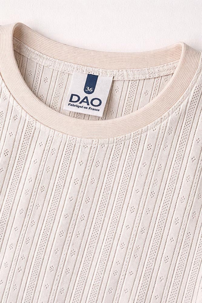 T-shirt Adèle pointille col rond ecru manches courtes